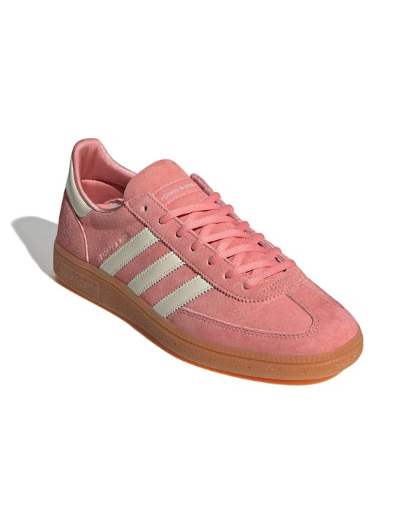 Elevate your sporty and stylish look with the Adidas Handball Spezial Sporty & Rich! Lovely pink accents stand out against the smooth suede and cream leather details, while the minimalistic "adidas" branding adds a touch of sophistication. Co-branded sockliners complete the iconic design of this must-have shoe.
