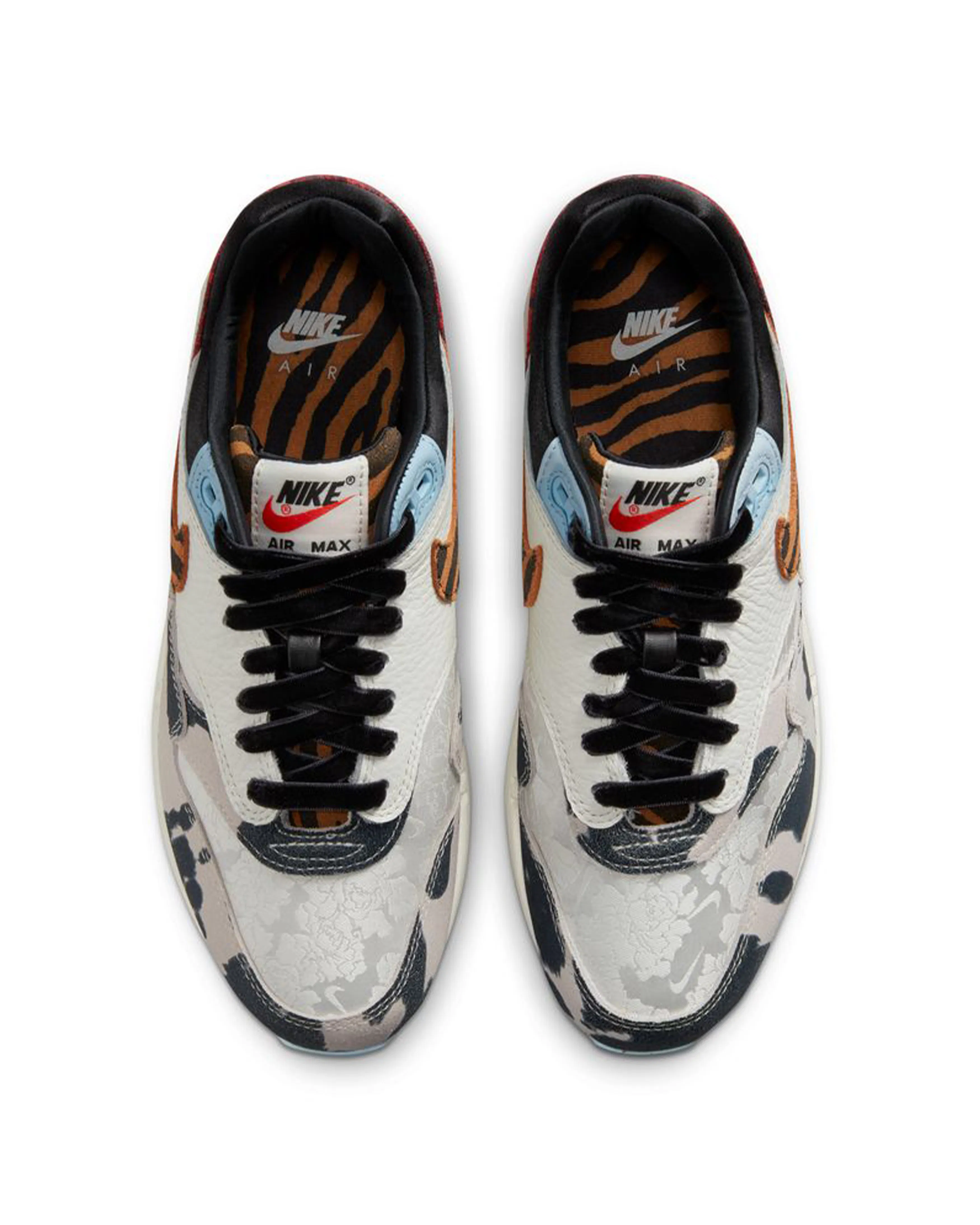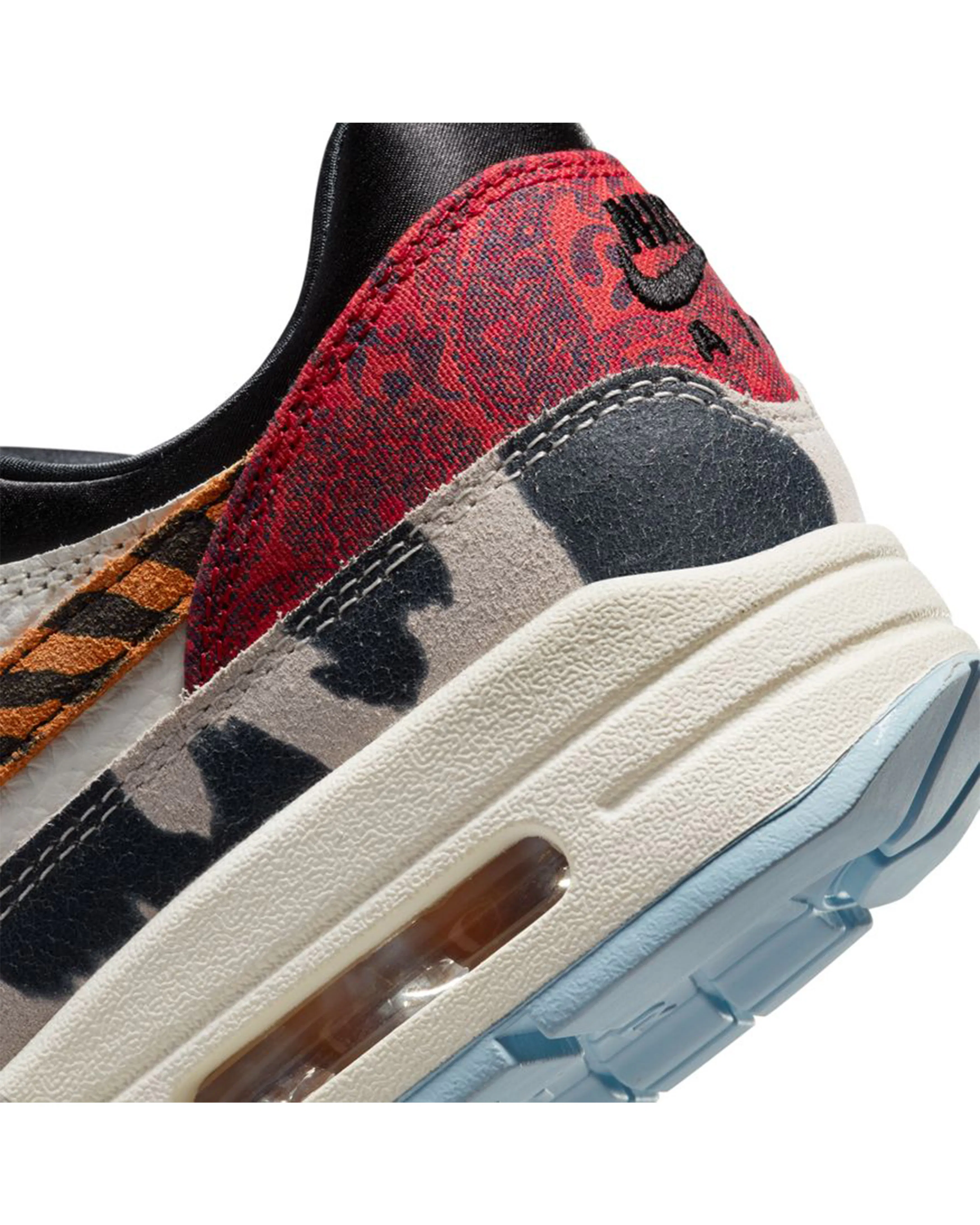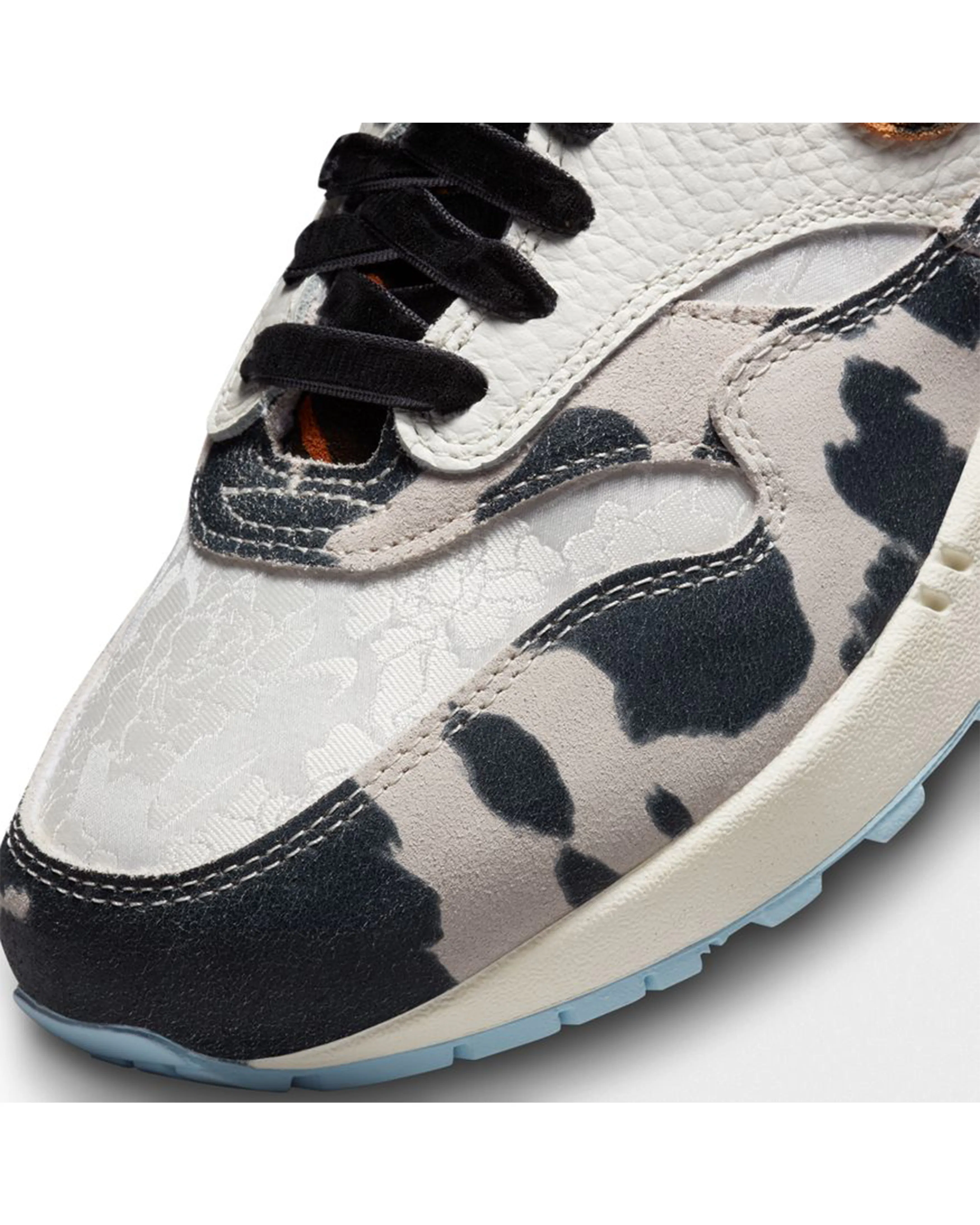 Captivating and thumping with bold prints and textures, the Air Max 1 '87 is the statement piece every 'fit needs. Inspired by what the hottest sneaker boutique would look like, we've upped the opulence with warm earth tones and unexpected patterns that nod to sophisticated upholstery and area rugs. From velvety laces to a silky black liner and icy blue outsole, these kicks take decor dominance to a brand-new level. Ready to hang?