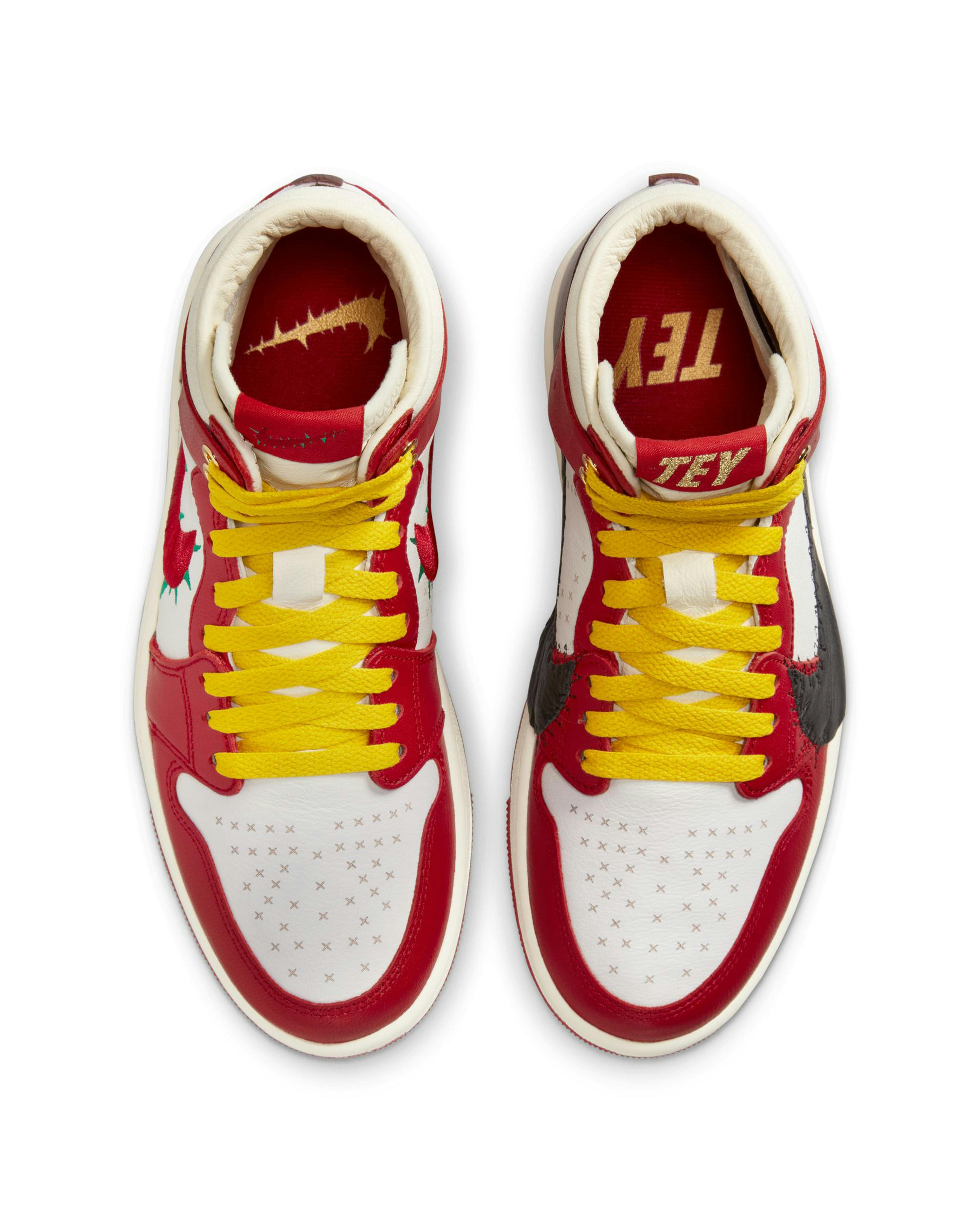 Infused with Teyana Taylor's boundless creativity and signature Jordan design DNA, this collaboration celebrates anyone who's overcome a struggle. Like roses out the concrete, there's no boxing you in—and nowhere you can't flourish. Teyana takes the iconic AJ1 and embellishes it with daring details. Check out the thorns embroidered on one Swoosh while the other Swoosh dips onto the midsole. Notice the x's on the toebox and the upper. Reveal a special message when you unlace the top two eyelets. Packaged together, you get something greater than its parts: a bold and beautiful pair of kicks.